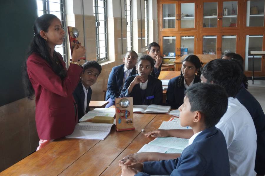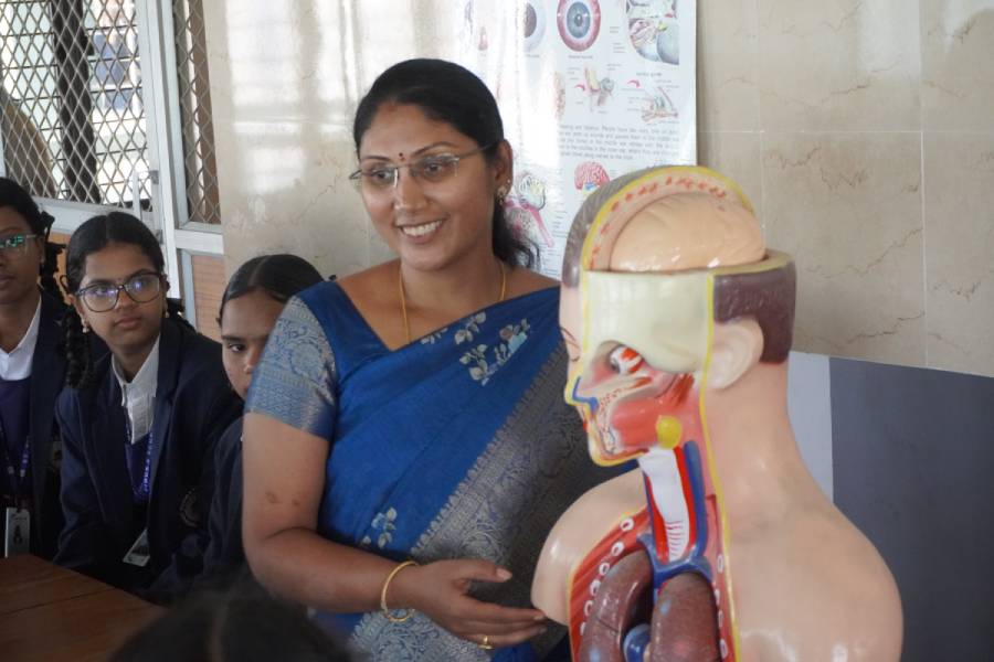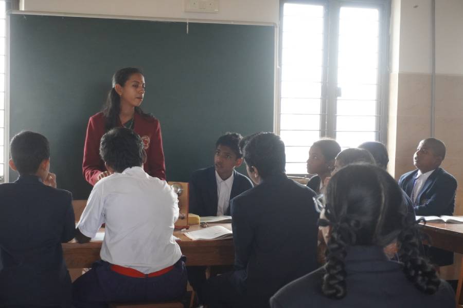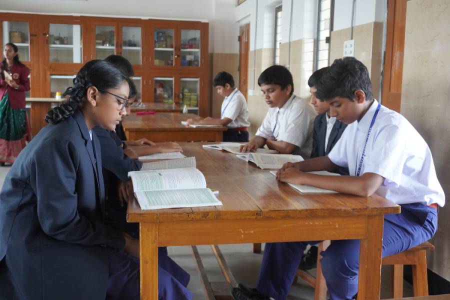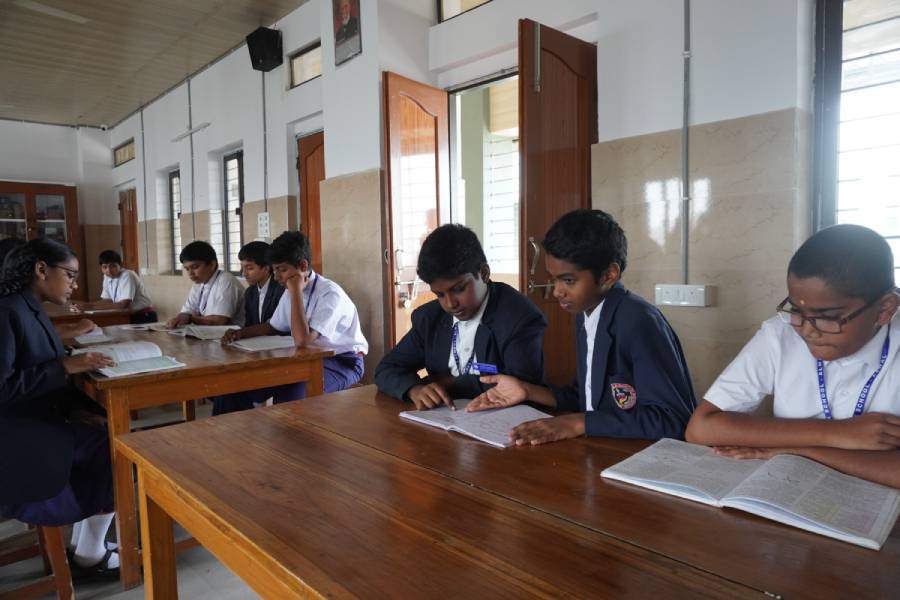 The school runs in two multistoried buildings seperately for kindergarten and I to X classes. Classrooms are spacious, well ventilated with digital boards.