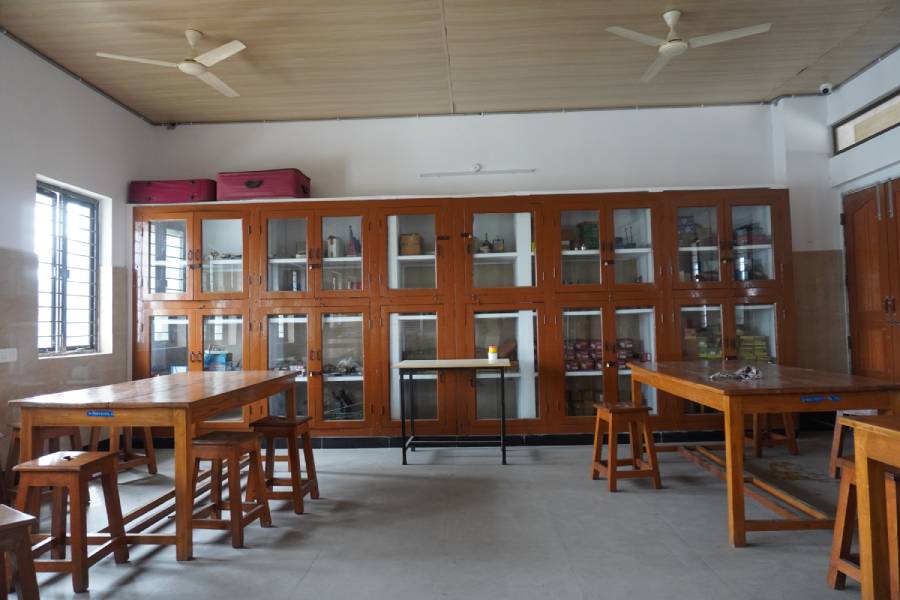 To introduce and improve the concepts in mathematics a spacious mathematics lab has been provided with models, solids and necessary equipment